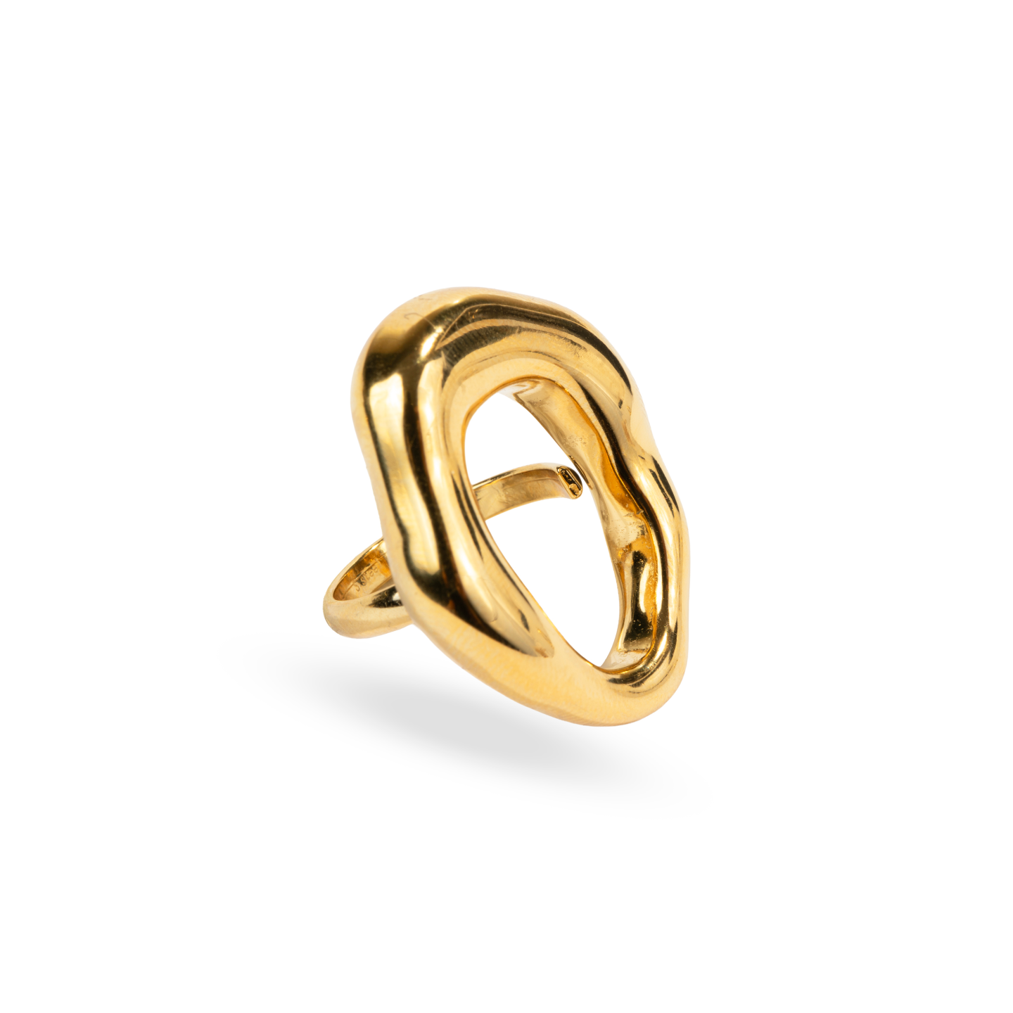 Con una silueta amplia y envolvente, este anillo destaca por su forma suave y elegante. Su diseño minimalista pero impactante lo hace ideal para elevar cualquier outfit con un toque sofisticado y actual.