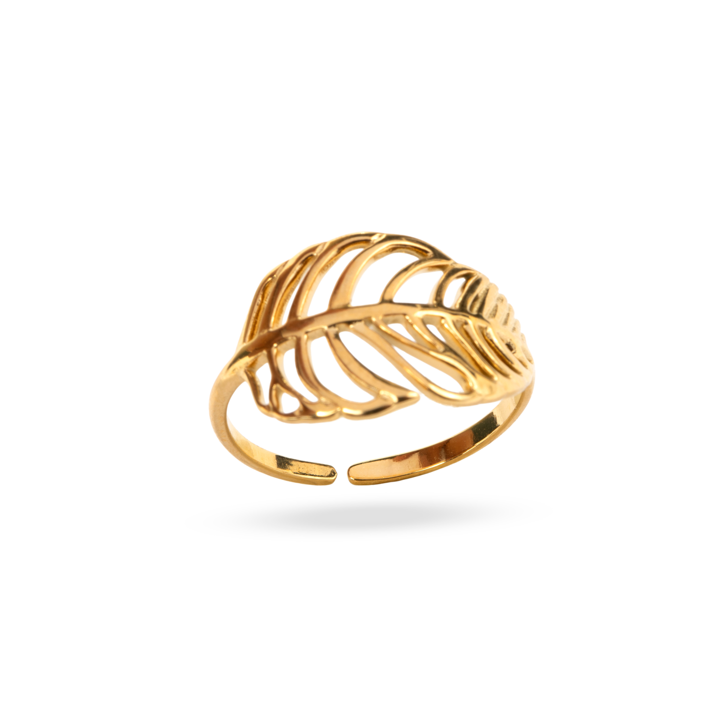 Inspirado en la naturaleza, este anillo con diseño de hoja combina elegancia y frescura. Su estructura abierta y detalles delicados aportan un estilo orgánico y sofisticado que complementa tanto looks casuales como más formales.