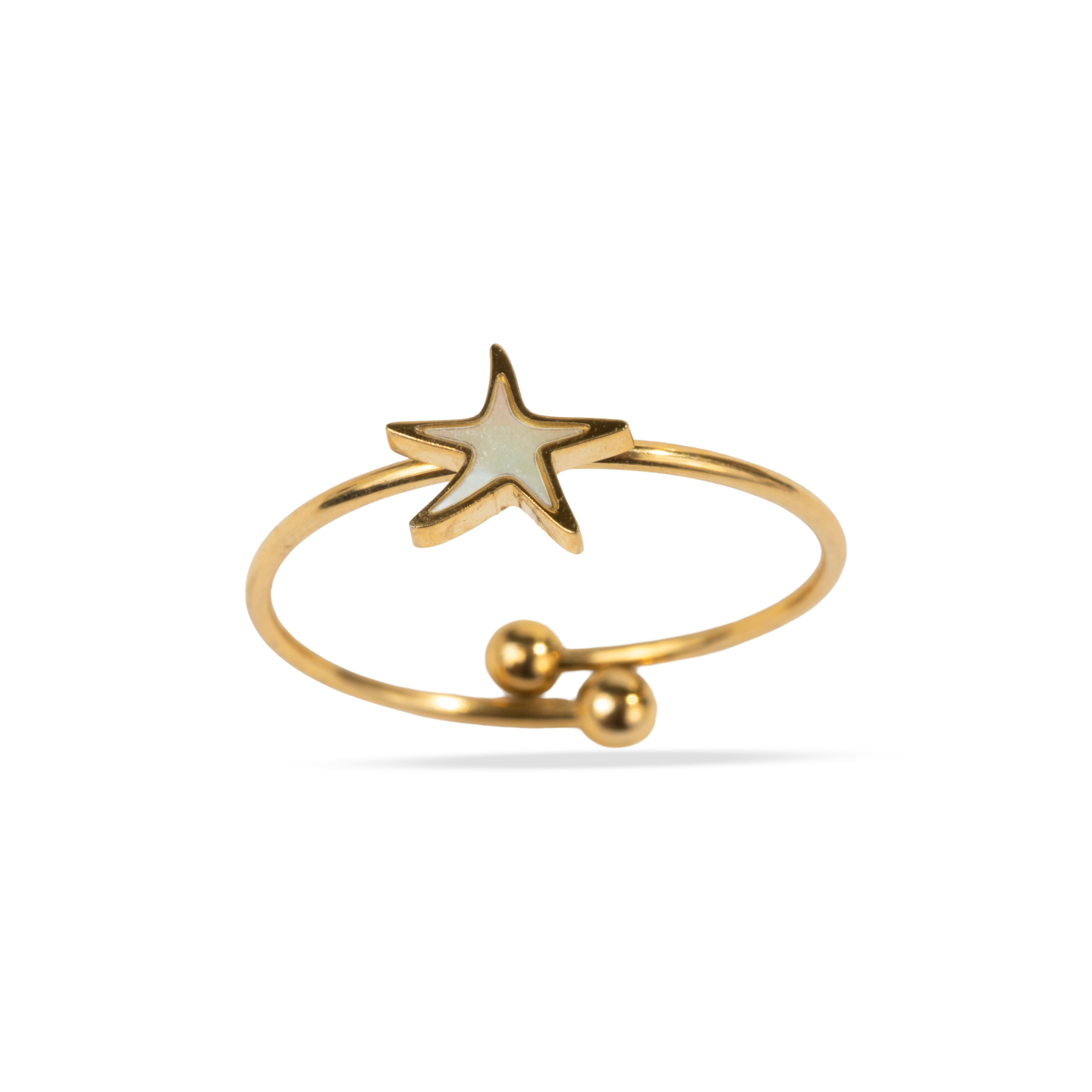 Este anillo refleja luz y delicadeza gracias a su estrella enmarcada en dorado con centro brillante. Su diseño transmite dulzura y elegancia, convirtiéndolo en una pieza ideal para quienes aman los accesorios sutiles pero con significado. Es perfecto para usar a diario y añadir un toque especial y luminoso a cualquier outfit.