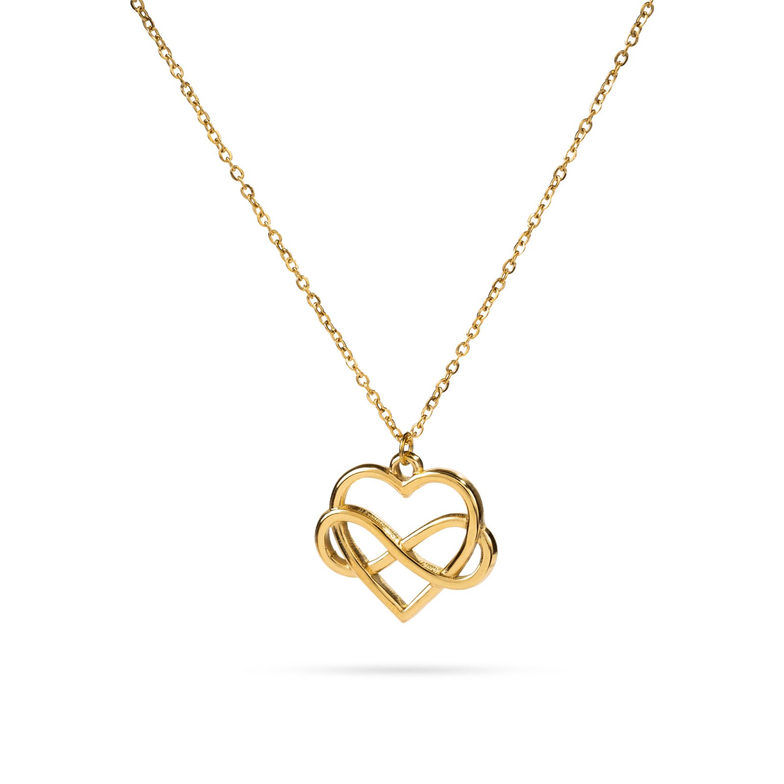 Collar dorado con símbolo de infinito y corazón
