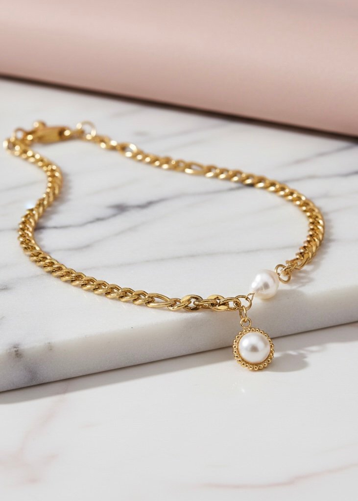• Diseño: Cadena de eslabones con detalles de perla
