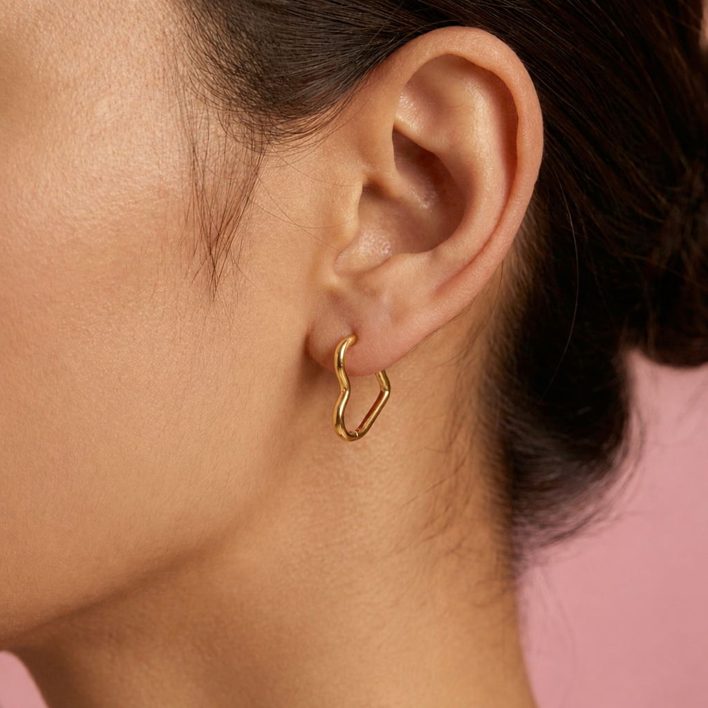 Pendientes en forma de corazón fabricados en acero inoxidable de alta calidad con acabado dorado pulido. Su diseño minimalista y refinado los convierte en una pieza versátil, adecuada tanto para el uso diario como para ocasiones especiales.