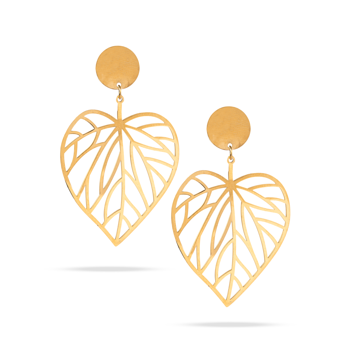 Estos pendientes combinan la silueta de corazón con un diseño interno calado en forma de hoja, creando una pieza ligera y femenina que equilibra romanticismo y naturaleza.