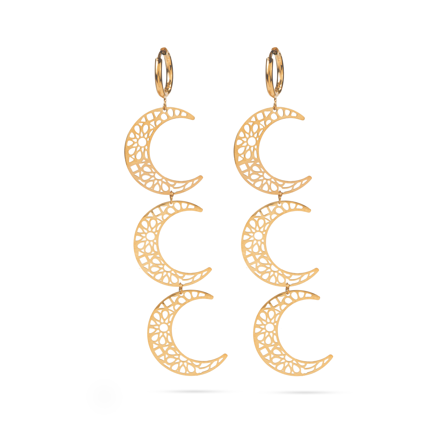 Un diseño largo con tres lunas crecientes caladas que aporta movimiento y un aire místico.